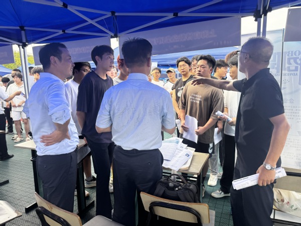下午2时,包括上午参会企业在内的200余家知名企业齐聚学校篮球场,参加了规模盛大的2025年整个学校的秋季校园招聘会。现场人头攒动,各企业的展位整齐排列,构成了一条条“就业长廊”,将秋季校园招聘活动推向了高潮。