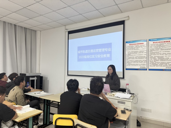 为切实保障学生岗位实习安全,强化安全意识,筑牢实习期间的思想与行为防线,城市轨道交通运营管理专业全体实习指导老师于2025年9月开展了2023级学生岗位实习安全教育培训会,为大三学生即将开始的实习生涯系好“第一粒安全扣”。
