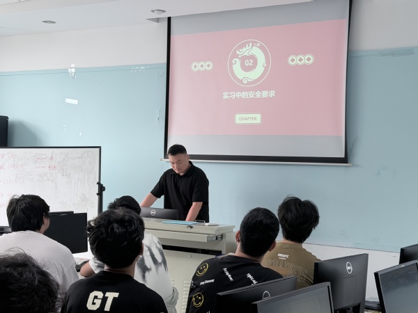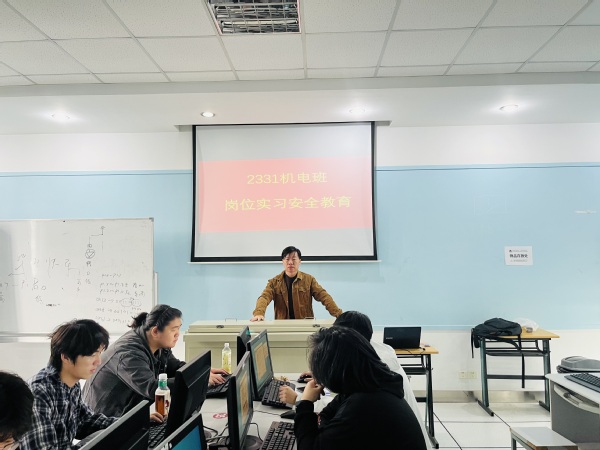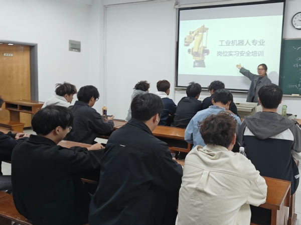 工业机器人技术专业教育的现场,工业机器人技术专业负责人沈凯老师重点培训了学生实际操作中的安全风险,要求学生掌握实用的防护与应对技能,同时将持续把安全培训贯穿实习全过程,通过定期巡查、动态提醒等方式,切实守护学生实习安全,助力学生在实践中提升专业能力。