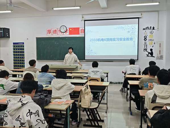 安全是革命的本钱,健康是人生的基础。指导老师们的谆谆教诲饱含关切与期望。本次教育内容翔实、要求清晰,如同一场及时雨,为即将踏上实习征程的机电学子敲响了安全警钟,注入了强大的防护意识。学院祝愿全体实习生能将安全理念内化于心、外化于行,以高度的责任感和警惕性,圆满完成实习任务,满载实践真知与成长硕果。(机电工程学院机电一体化系)