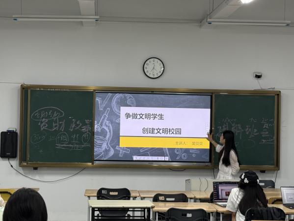 在日常行为举止方面,老师要求同学们在课堂、图书馆、食堂等公共场合自觉遵守秩序,待人接物礼貌谦和,共同维护和谐文明的校园氛围。针对仪容仪表,班会强调了大学生应展现阳光、整洁、大方的精神风貌,避免奇装异服,将精力集中于内在修养与学识提升。