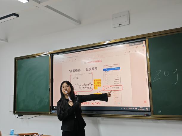 除了行为规范的约束,班会更注重价值层面的引导。辅导员老师鼓励同学们要“勤于学习”,尽快适应大学学习节奏,将专业知识学扎实、学深入;要“崇德向善、诚实守信”,在学术和生活中坚守道德底线;要“热爱集体、关心学校发展”,积极融入班集体和学院大家庭,以主人翁的姿态参与校园建设。