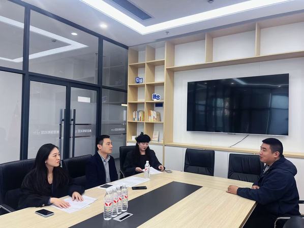 在企业会议室,韩丽东副院长、杨磊主任与上海得俊轨道交通有限公司相关负责人进行了亲切友好的座谈。双方就校企协同育人新模式、课程共建与教材开发以及双师型教师培养等议题进行了广泛而深入地探讨。韩丽东副院长表示,学院高度重视与企业方的紧密合作,希望以此次交流为契机,推动校企合作向更深层次、更宽领域发展,共同培养符合行业企业需要的高素质技术技能人才。公司领导对我院实习生的专业素养和综合能力给予了高度评价,并表达了与学院建立长期稳定合作关系的强烈意愿。