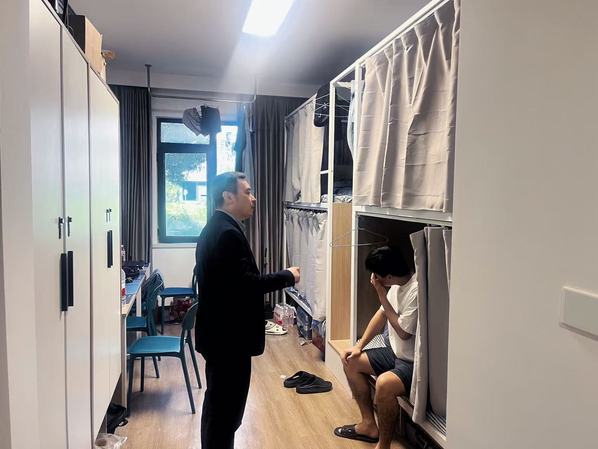 座谈会后,学院领导在公司人员的陪同下实地察看了实习生的工作环境与食宿环境,仔细询问了同学们在实习期间的工作内容、生活状况和收获体会。杨磊主任勉励大家要珍惜宝贵的实习机会,将课堂所学理论知识与一线实践紧密结合,勤学多问,不断提升专业技能和职业素养,为未来的职业生涯奠定坚实基础。