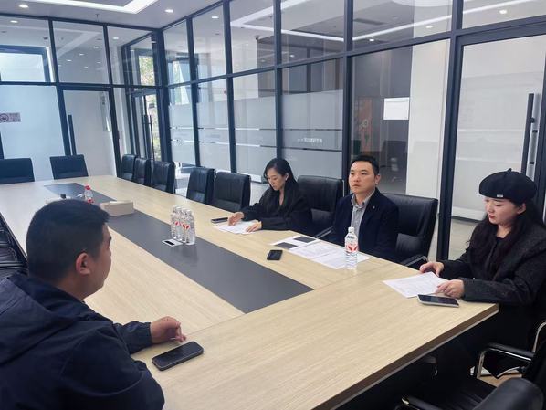 在企业会议室,韩丽东副院长、杨磊主任与上海得俊轨道交通有限公司相关负责人进行了亲切友好的座谈。双方就校企协同育人新模式、课程共建与教材开发以及双师型教师培养等议题进行了广泛而深入地探讨。韩丽东副院长表示,学院高度重视与企业方的紧密合作,希望以此次交流为契机,推动校企合作向更深层次、更宽领域发展,共同培养符合行业企业需要的高素质技术技能人才。公司领导对我院实习生的专业素养和综合能力给予了高度评价,并表达了与学院建立长期稳定合作关系的强烈意愿。