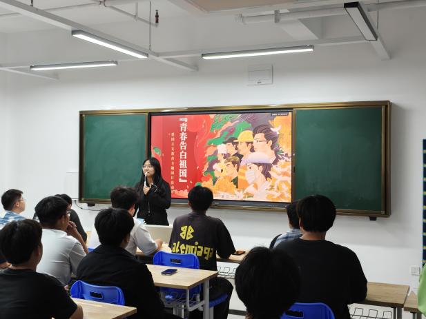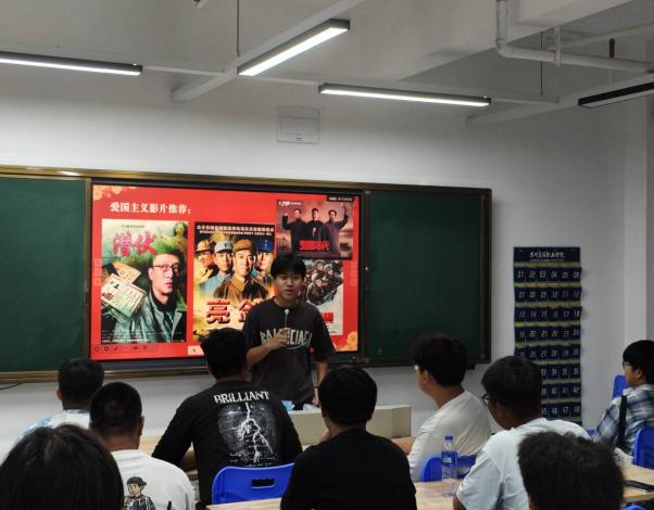各团支部组织观看了《建国大业》、《我和我的祖国》等经典爱国主义影片。银幕上波澜壮阔的历史画卷和感人至深的英雄故事,让同学们深刻感受到新中国成立的艰辛与不易,以及一代代人为国奋斗的赤子之心。观影后,许多团支部组织了分享会,同学们踊跃发言,分享自己的感悟,表示要将这份感动转化为前进的动力。