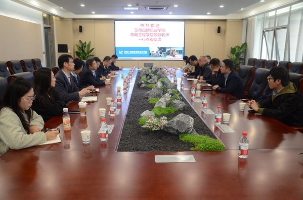 郭旭红院长介绍了机电工程学院在产学研协同育人、项目化教学改革等方面的探索实践,并围绕学生职业素养养成、实习稳定性管理等职业教育共性难题,与对方深入交换意见。他表示,苏州工业园区职业技术学院在推动校企合作制度化、精准化、共赢化方面的成功经验,为我院机电类、自动化类专业深化产教融合、创新人才培养模式提供了重要借鉴。