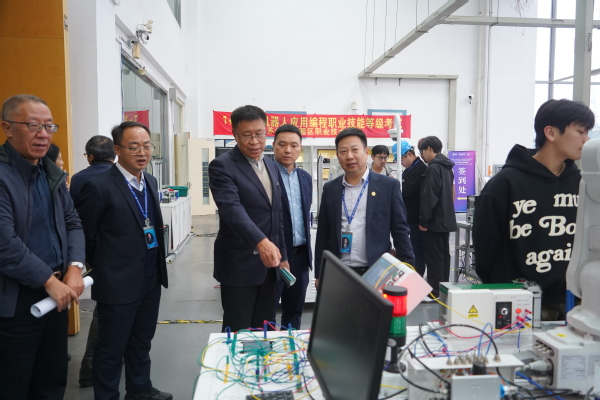 调研期间,在吴建明院长及团队陪同下,我院调研团队实地走访了与人工智能、智能制造专业深度协同的校内企业、生产性实训中心及学生创新工坊。郭旭红院长对其真实场景化实训环境、行业前沿设施设备及贯穿教学全过程的精细化管理给予高度评价。